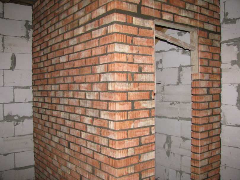 Поскольку кирпичные простенки между помещениями обязательно отделывают, то их кладка не носит декоративной характер. Поэтому в материале допускается наличие небольших сколов и незначительных трещин, они все равно скроются под слоем штукатурки. Работы по строительству конструкции ведут в такой последовательности: