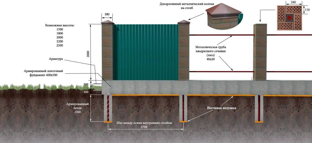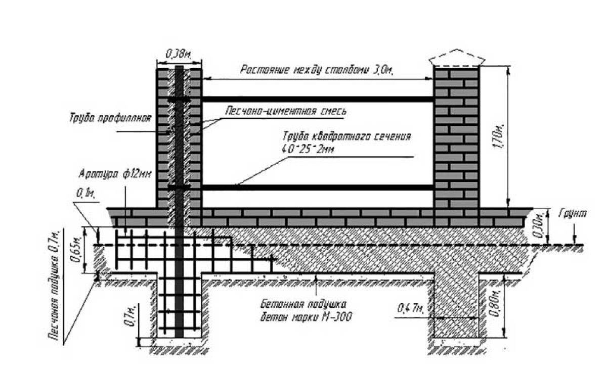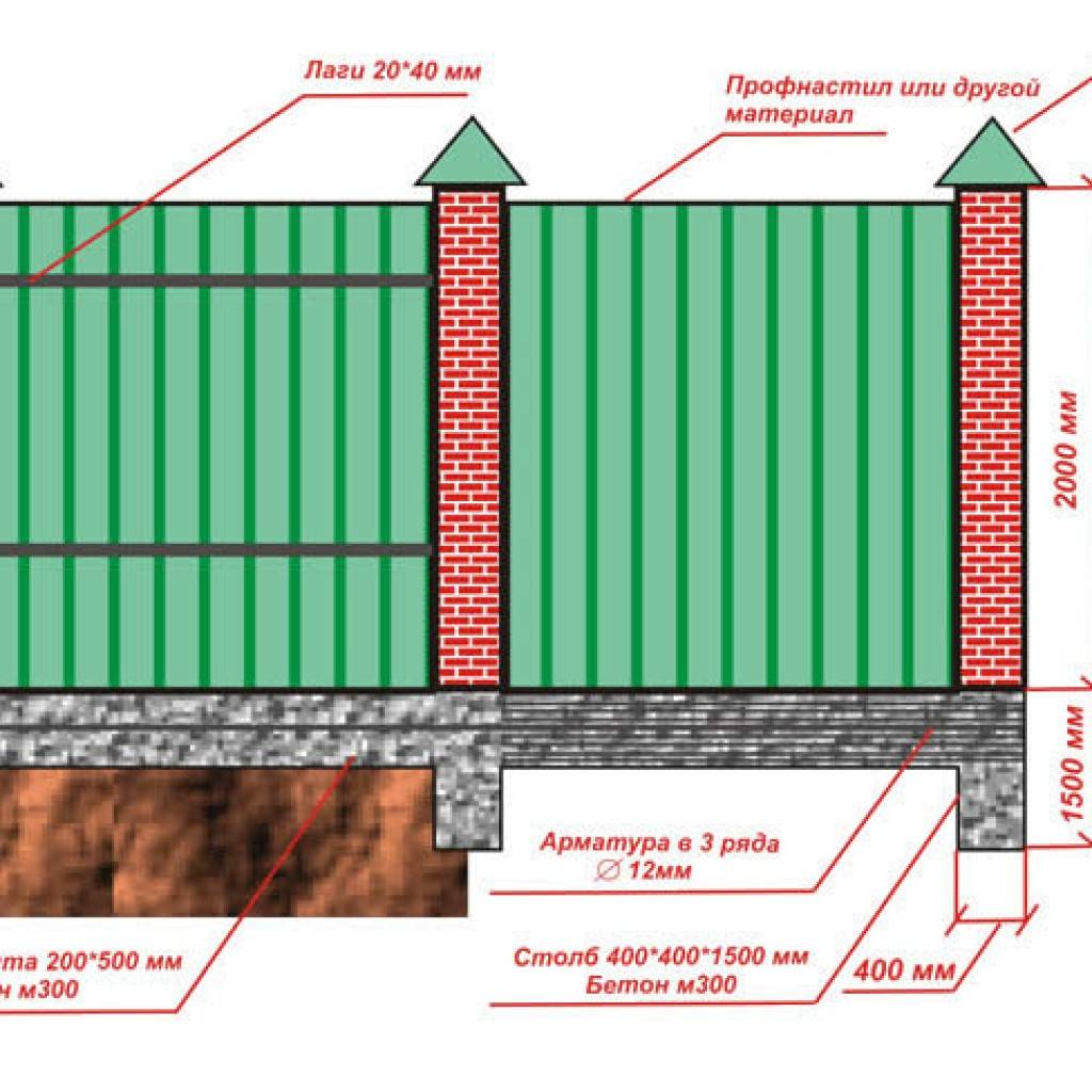 Полезное Строительство забора для частного дома и дачи из силикатного и облицовочного кирпича: пошаговая инструкция