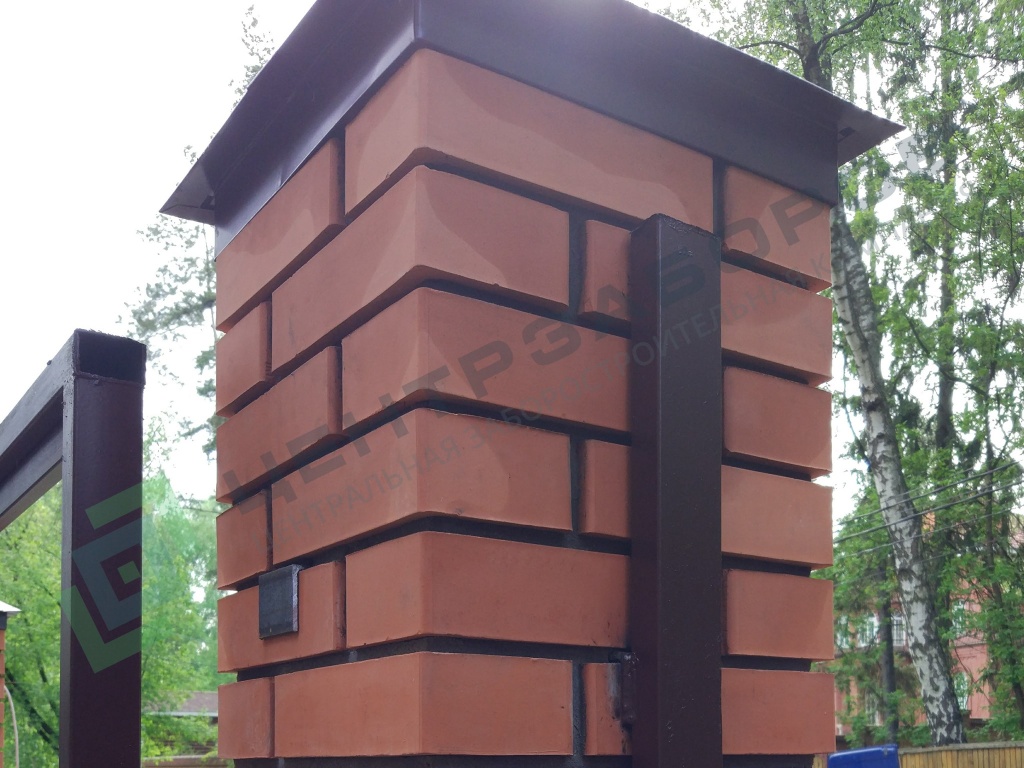 Колпак защищает кирпичный столб от осадков и негативного влияния агрессивной внешней среды.