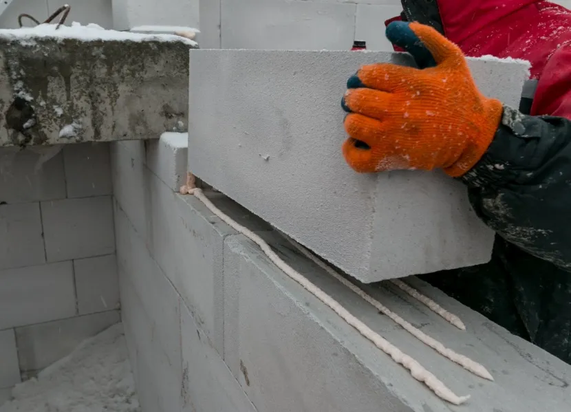Укладка блоков на клей-пену с минимальным зазором Источник 1beton.info