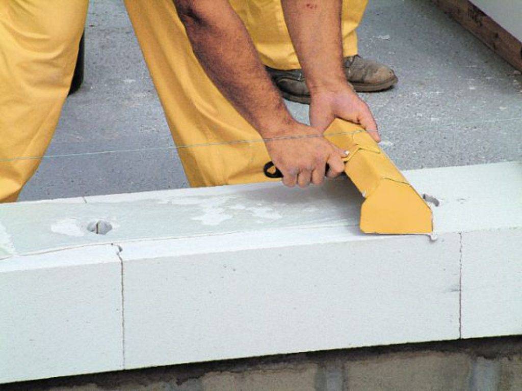 Укладка газобетона не требует большого опыта, главное – соблюдать технологию, указываемую производителем, и придерживаться маячков. В результате образуется поверхность с достойными показателями прочности, тепло- и звукоизоляции.