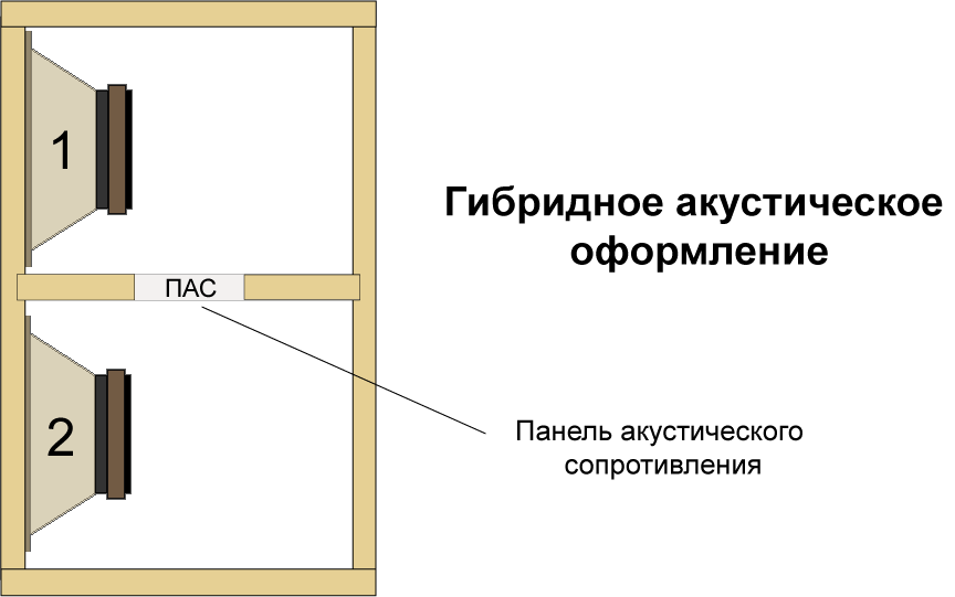 Если используются динамики кратно разные по массе подвижной системы, более «тяжелый» динамик будет оказывать воздействие на более «легкий» динамик. Для регулирования необходимой величины этого воздействия используют ПАС (панель акустического сопротивления).