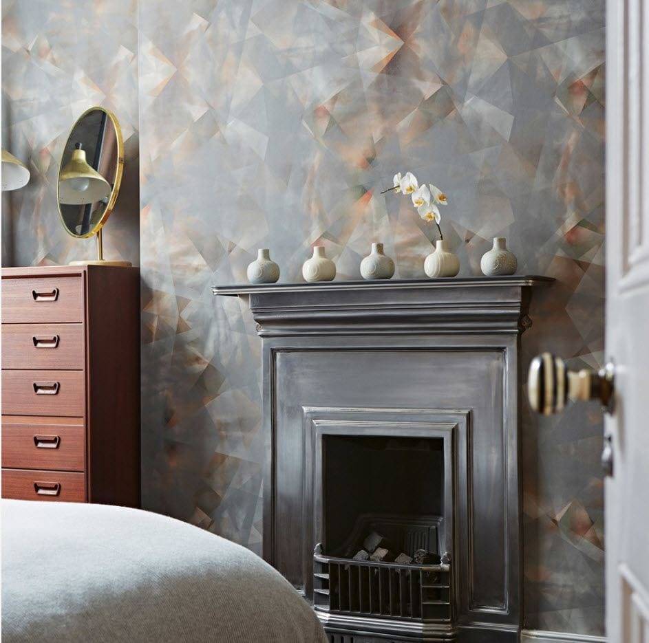 Для этого стиля отлично подойдут обои с абстрактными и растительными узорами в довольно насыщенных, но при этом спокойных цветах. Часто используется серый с примесью других оттенков, черный, белый, бордовый, бежевый и синий. Для визуального увеличения пространства в ар-деко можно применять голографические картинки и оптические иллюзии.