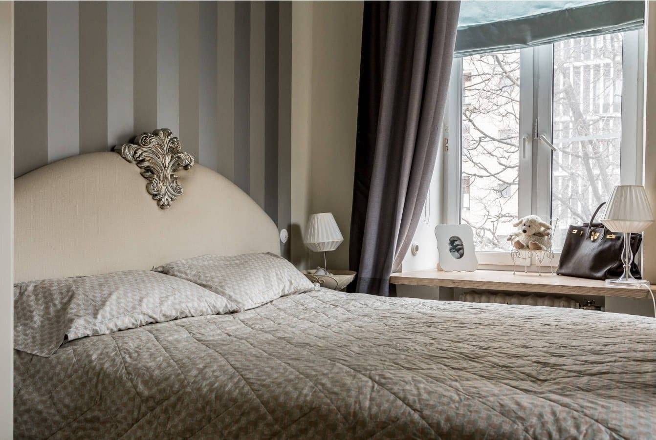 Узор + геометрия. Эта комбинации хорошо выглядят в классическом дизайне, где геометрия становится дополнением к рисунку. Геометрия подбирается спокойная, неяркая — тогда она не станет надоедать и будет выглядеть в интерьере спальни ненавязчиво.