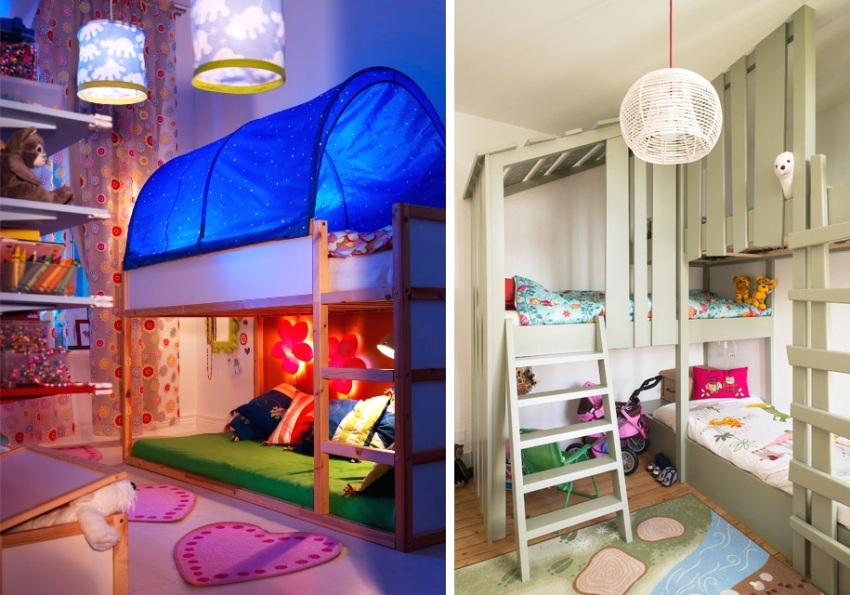 Еще одна альтернатива — шторы. Их легко установить, они не занимают много места, но при этом ткань является отличной перегородкой и подходит даже для разнополых детей. К тому же, занавески не имеют острых углов и удар о них во время активных развлечений не сулит ничего серьезного.