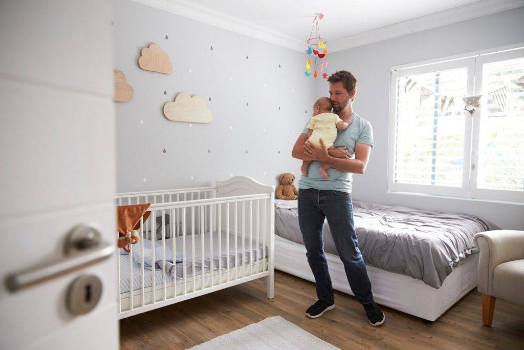 Лучше всего, чтобы комната для новорожденного находилась рядом с комнатой для родителей. Еще одним вариантом является обустройство уголка для малыша прямо в родительской спальне. Дело в том, что ребенок первое время весьма часто просыпается, чтобы поесть или при помощи плача оповестить окружающих о проблемах со здоровьем