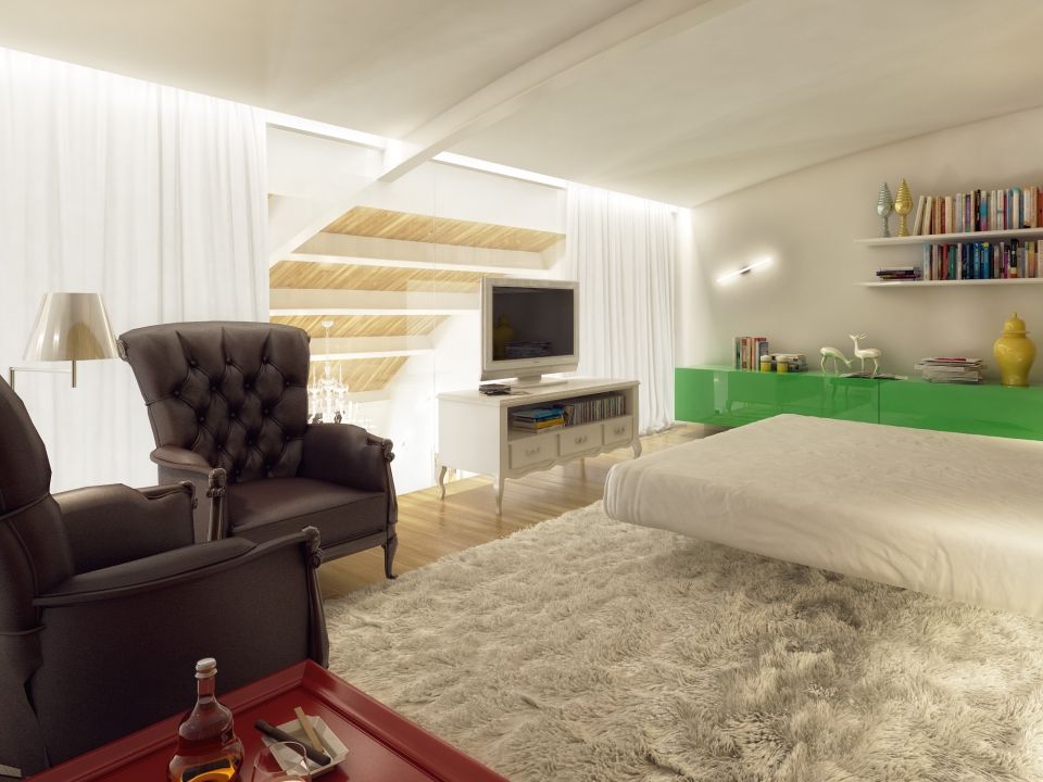 - Соблюдать сочетание «два в одном». Жилая антресоль позволяет сочетать в одном помещении гостиную, спальню и даже ванную. Все необходимое в шаговой близости!