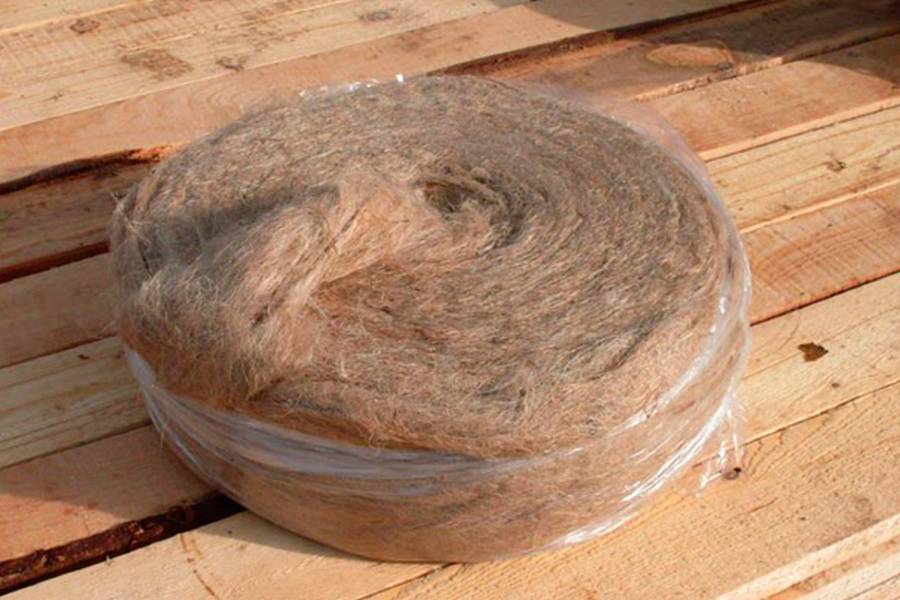 Льняные пакли считаются более надежными и безопасными, чем мох и намного качественнее джутовых канатиков. Лен очень мягкий, легко повреждается во время забивки в швы, поэтому работать с ним необходимо аккуратно, максимально нежно забивая пустоты.