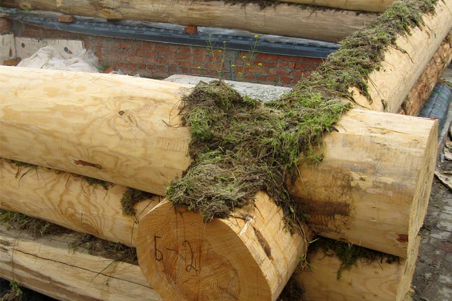 - данный момент зависит от того, чем конопатят сруб – если используется сухой мох, его надо будет совсем немного увлажнить (а вот другие материалы обрабатывать не нужно).