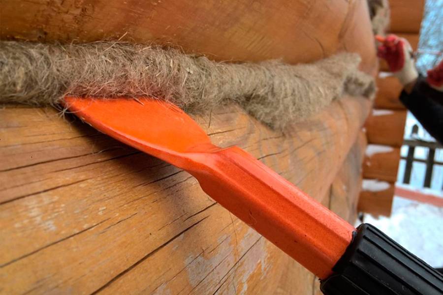 Инструмент при конопатке сруба.