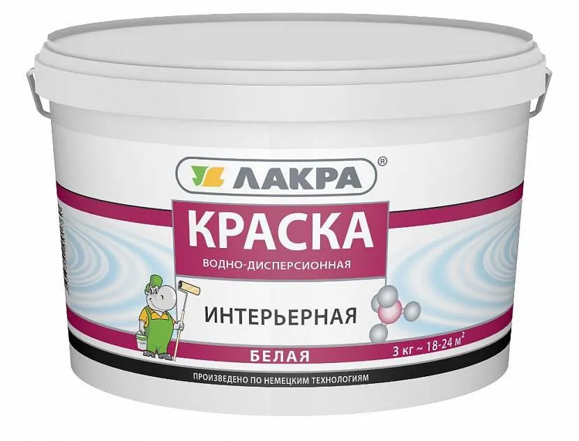 Это краска на акриловой основе, применяющаяся для внутренних отделочных работ. Вся краска этого типа исключительно белая, но, благодаря возможности колеровки, может приобретать любой цвет и оттенок.