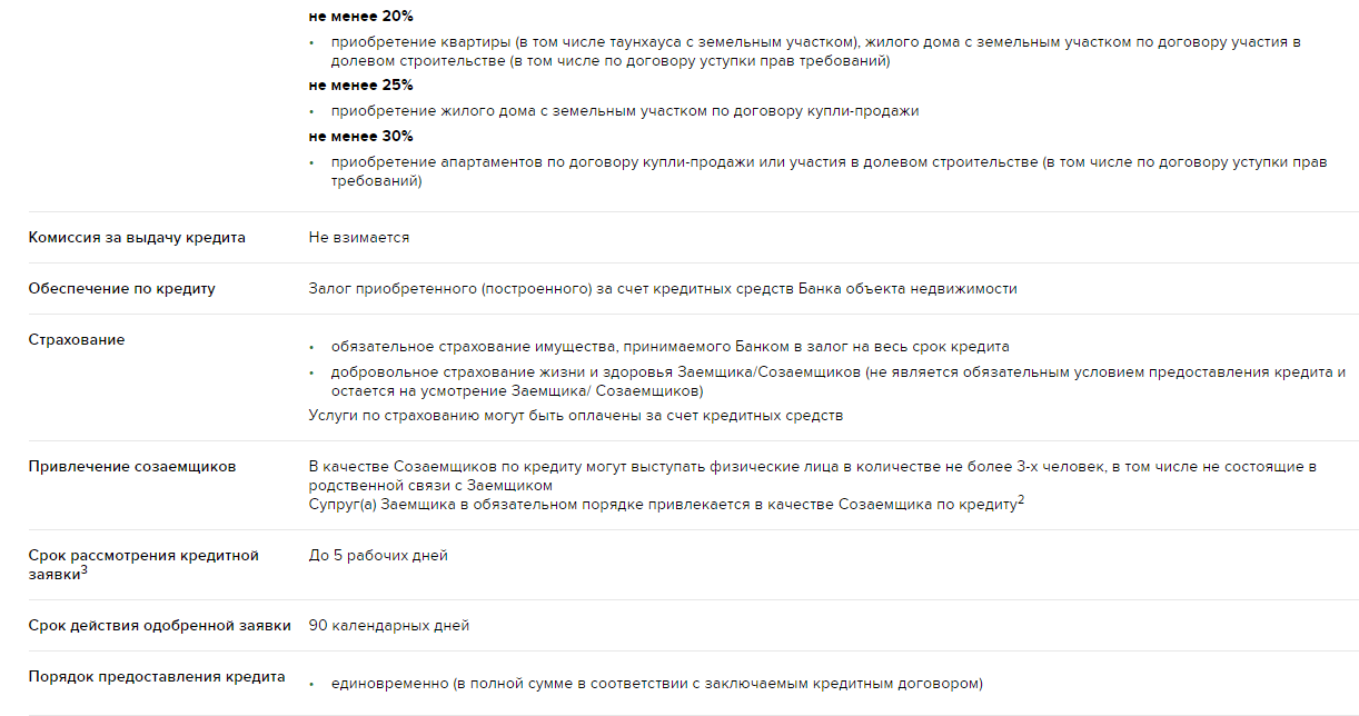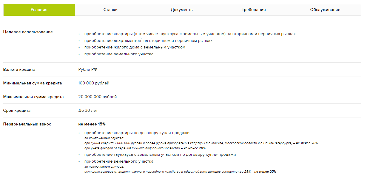 На конец 2017 года данный банк предоставляет земельную ипотеку на следующих условиях: