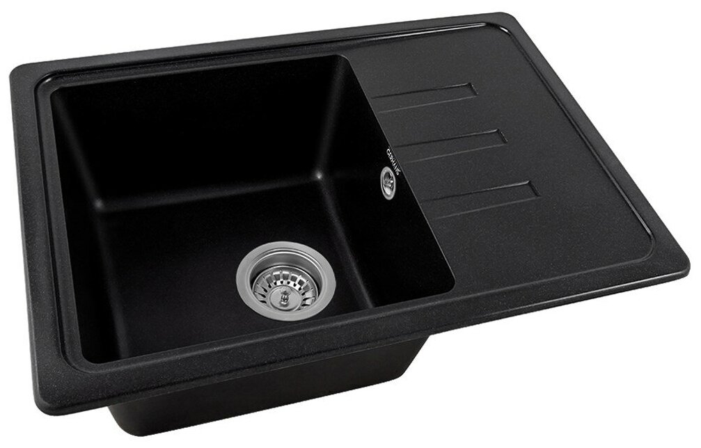 Мойка укомплектована сифоном, гофро трубой, с возможностью подключения посудомоечной (стиральной) машины, выпуск и корзинный клапан изготовлены из нержавеющей стали, комплектующие и винт М12 из никелированной латуни. Закругленные края облегчают уборку, а желоба на крыле обеспечивают слив воды с мокрой посуды. Строгие прямые линии подчеркнуты легким овальным срезом острых углов.