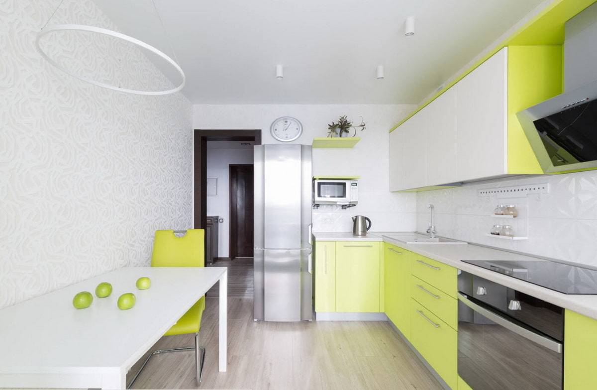 Один из вариантов планировки — перенос мойки под окно. Тогда для холодильника освобождается угол у входа. Но перенос мокрой зоны по закону также требует согласования. Такое решение потребует дополнительных хлопот с удлинением коммуникаций.