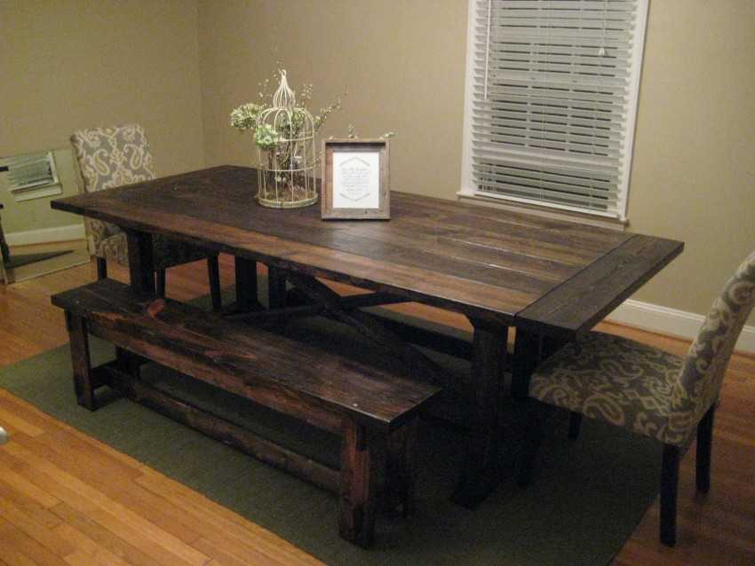 Если площадь помещения достаточная, лучше изготовить обеденный стол больших размеров: длиной до ста восьмидесяти сантиметров, шириной девяносто.