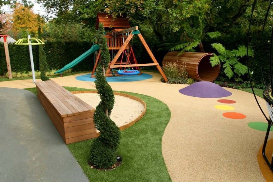 Качели так же удачная деталь, выбор модели зависит от выбранного стиля дизайна.