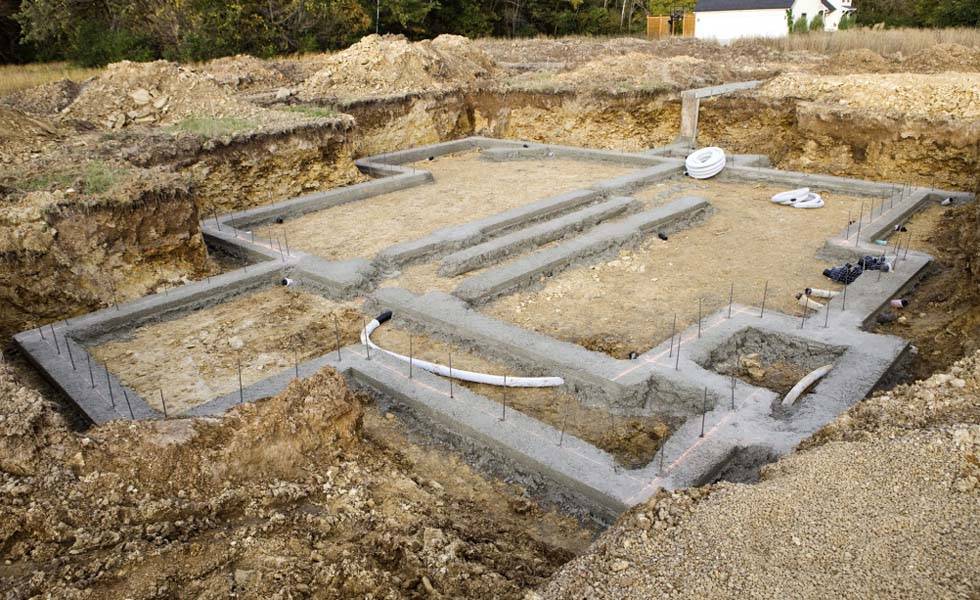 Основание представляет собой замкнутый монолитный контур, изготовленный из железобетона. Благодаря этому можно создать цельный каркас, который подходит для любого грунта, в том числе и нестабильного. На таком основании можно легко соорудить загородный дом или каменный забор.