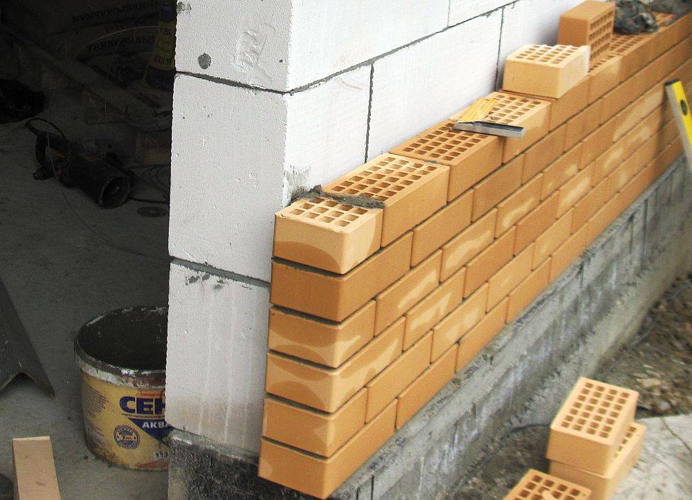 В случае стыкования разрезанной половинки и целого блока на вертикальный шов наносят слой раствора и плотно их соединяют. Для того, чтобы материал не поглощал воду из раствора, его перед началом работ смачивают водой.