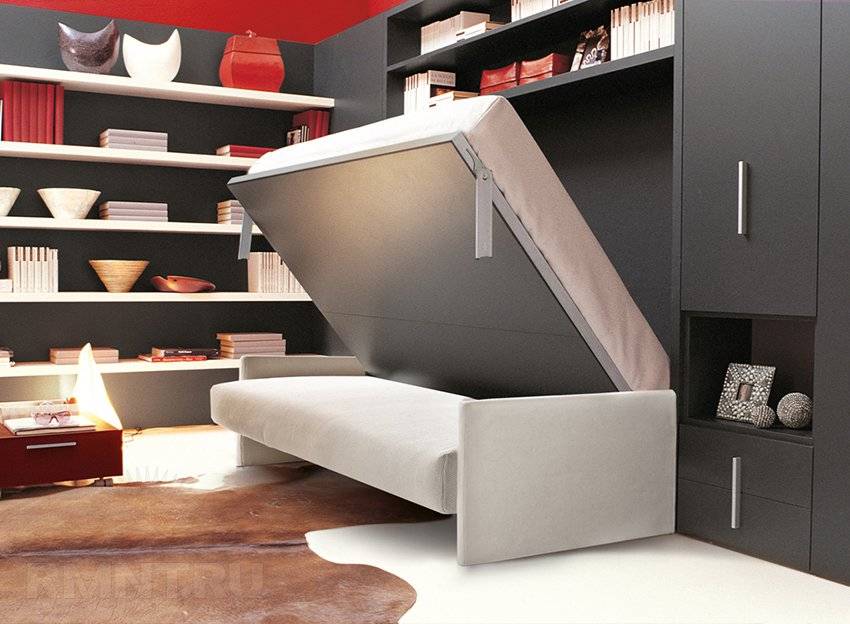 ». В собранном виде они представляют собой просто шкаф, фасад которого выполнен с учетом стилистических особенностей дизайна комнаты. Особый подъемный механизм позволяет быстро разложить полноценную кровать.