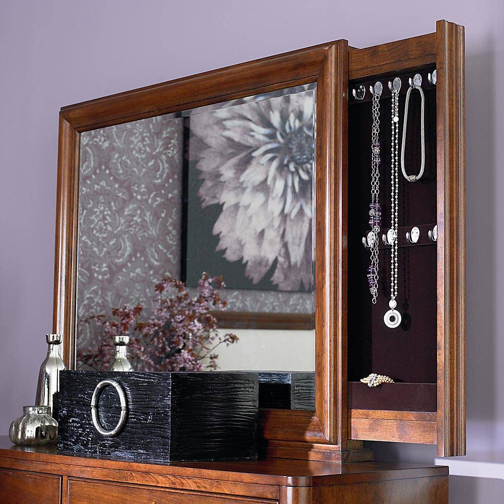 для размещения бижутерии и украшений можно использовать небольшие крючки и подставки с обратной стороны зеркала;