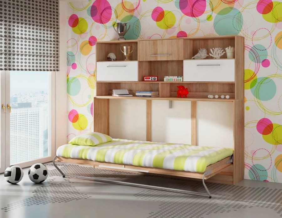 Детская комната редко бывает просторной. В ней нужно поставить сразу несколько предметов мебели: шкаф, кровать, стол, оборудовать место для игр и спорта, поэтому трансформирующиеся изделия — лучший вариант. Например, откидная кровать, которая прячется в шкаф, освобождает много свободного места для игр. Такая мебель может быть и двухъярусной — для двоих детей. Для того чтобы организовать удобный уголок для учебы, подходит стол-кровать. В модели совмещается односпальное ложе с письменным или компьютерным столиком. Мебель бывает разных вариаций: с выдвигающимися столешницами, двухъярусной (постель располагается на втором этаже), в комплекте со шкафом.