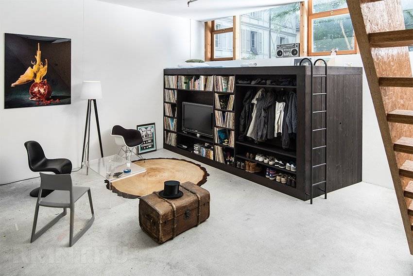 Даже квартиру большого размера можно сделать тесной, если загромоздить её не очень нужными предметами интерьера, да ещё и расставить их неправильно. Обставляя же малогабаритное жильё, нужно использовать каждый сантиметр имеющегося пространства, что позволит рационально организовать несколько зон: спальню, кабинет и гостиную. Не исключено, что одна или даже несколько таких секций будут находиться под потолком.