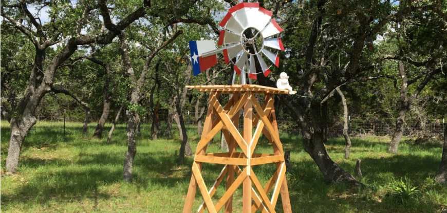 Мельница ветряного типа может скрывать ряд неприглядных мест на вашем участке наподобие канализационного люка.