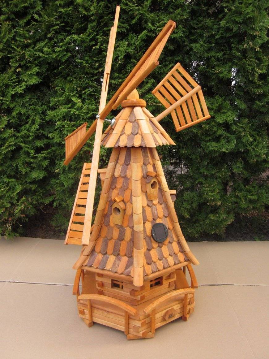 Одним из наиболее трендовых элементов дизайна ландшафта на этот момент считается ветряная мельница, и самое главное преимущество этого строения заключается в том, что конструкцию можно изготовить собственноручно.