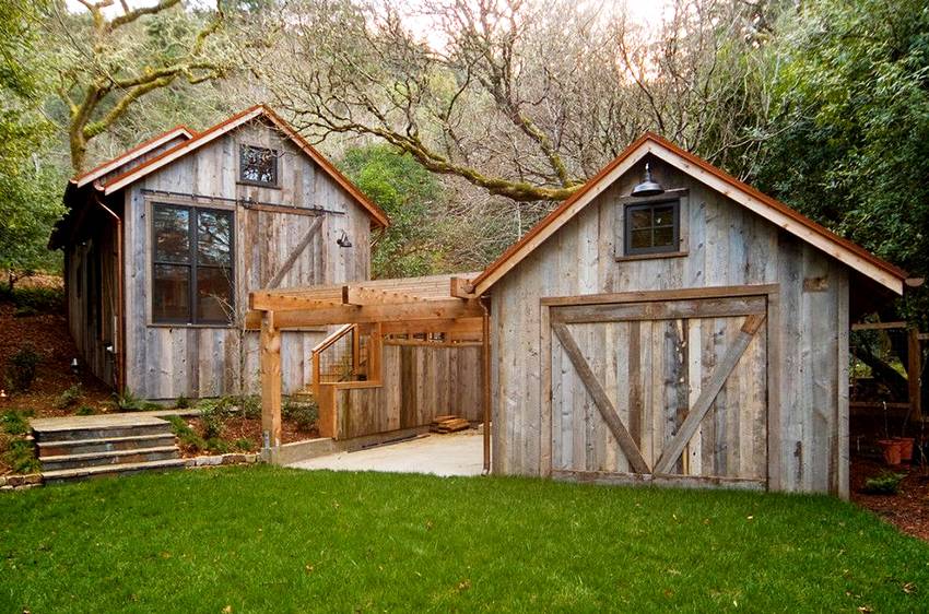 - за жилым домом, чтобы его не было видно. Иногда сарай также маскируют с помощью вертикального озеленения;