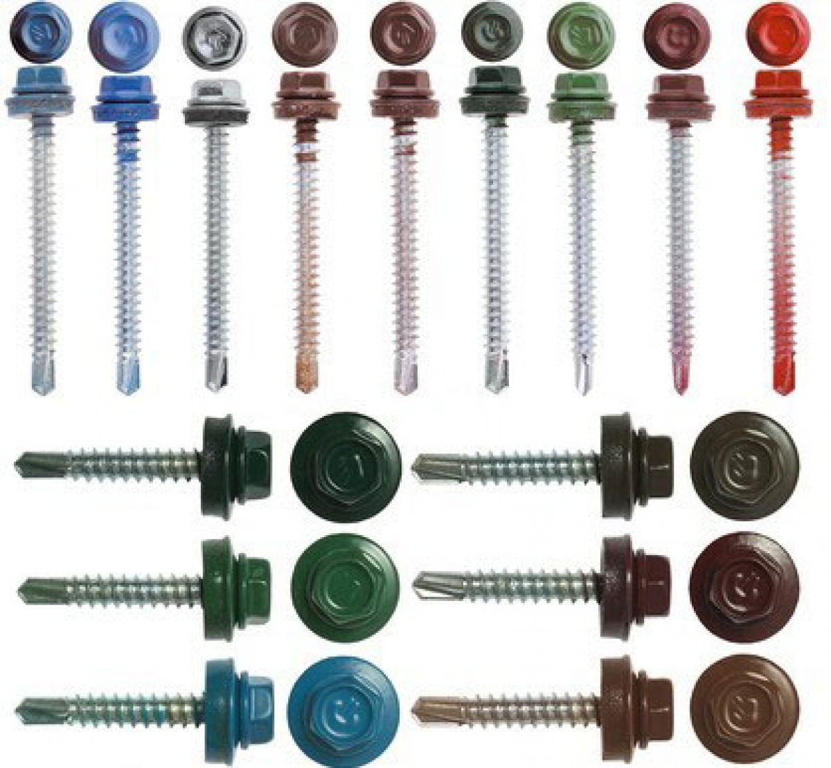 Крепят черепицу специальными кровельными саморезами с прокладкой. Необходимо закручивать их строго перпендикулярно листу таким образом, чтобы прокладка была слега прижата.