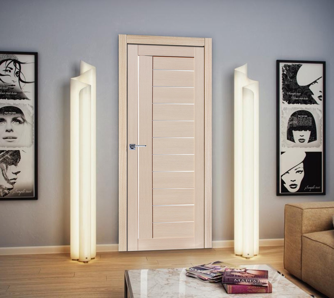 В случае если полы светлых тонов, то и дверь должна быть светлой, но чтобы интерьер не был однообразным и скучным, лучше подобрать межкомнатную дверь со вставками из стекла или бамбука. Контрастности может придать плинтус, который будет максимально совпадать с цветом дверных наличников .