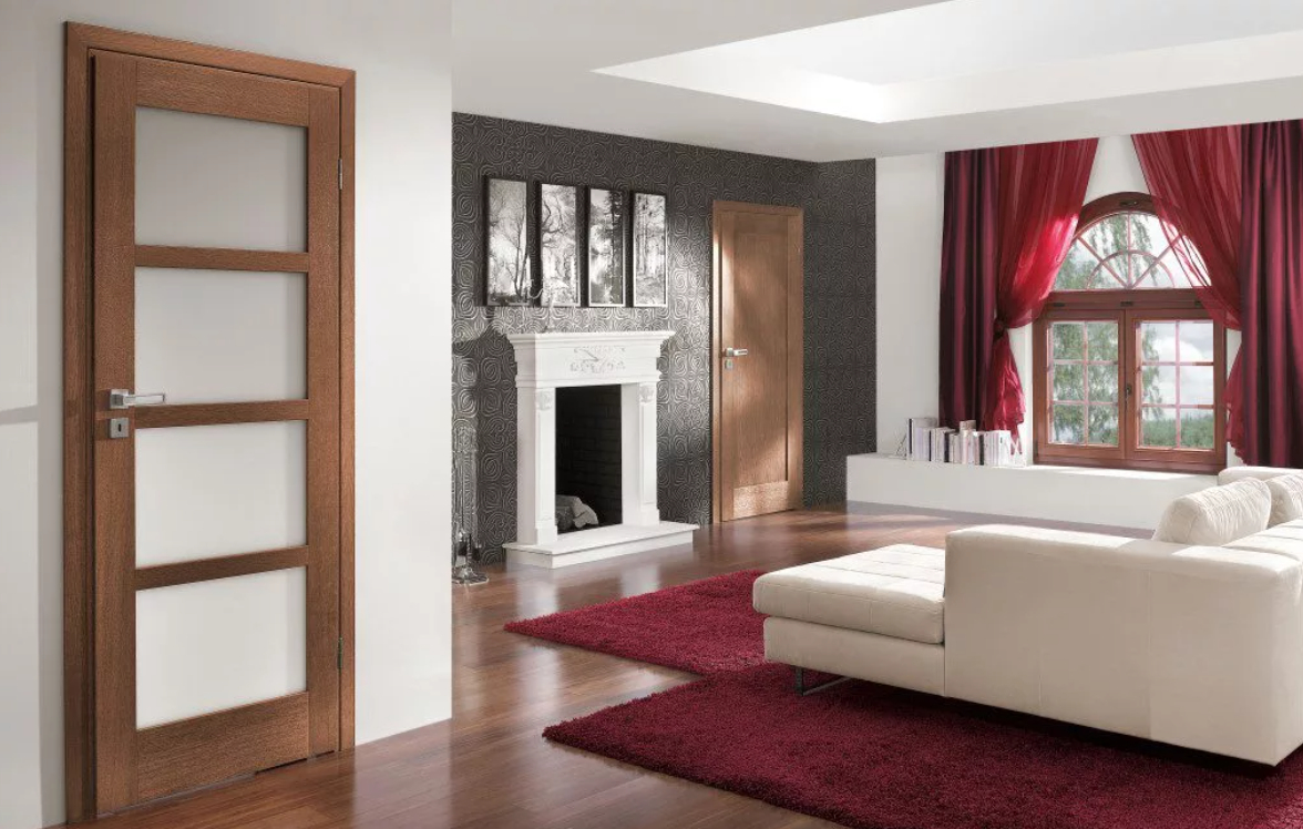 Есть также еще один вариант решения, в том случае, когда цвет дверного полотна нужно подобрать под каждую отдельную комнату — покрыть шпоном двери. Такие дверные коробки выполняются под заказ и требуют дополнительных затрат, но конечный результат будет стоить того.