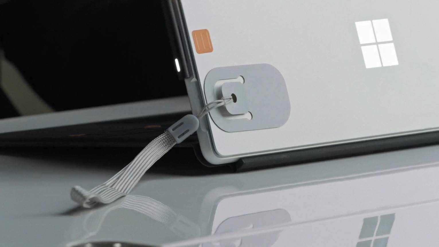 Складывание устройства также дает ему определенный уровень защиты. Внешний вид очень похож на другие продукты Surface, с серебристым оттенком и большим логотипом Microsoft.
