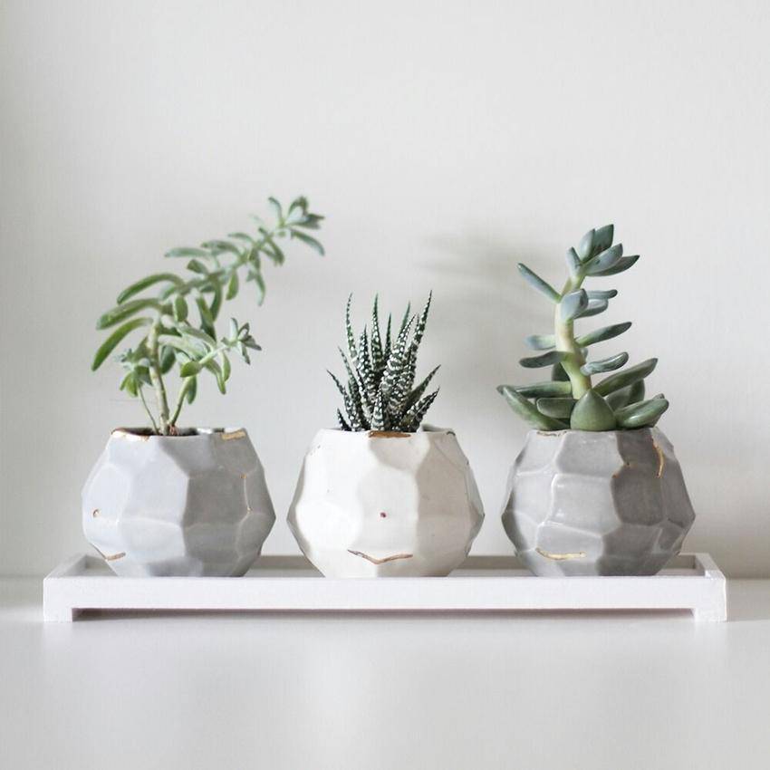 Отличным решением для декора являются комнатные растения. Но и они должны быть максимально простыми и требовать много ухода. Здесь будут лишними ярко цветущие растения типа фиалок, декабриста или орхидей, но отлично впишутся в стиль суккуленты, сансевиерия, кактусы, бонсай.