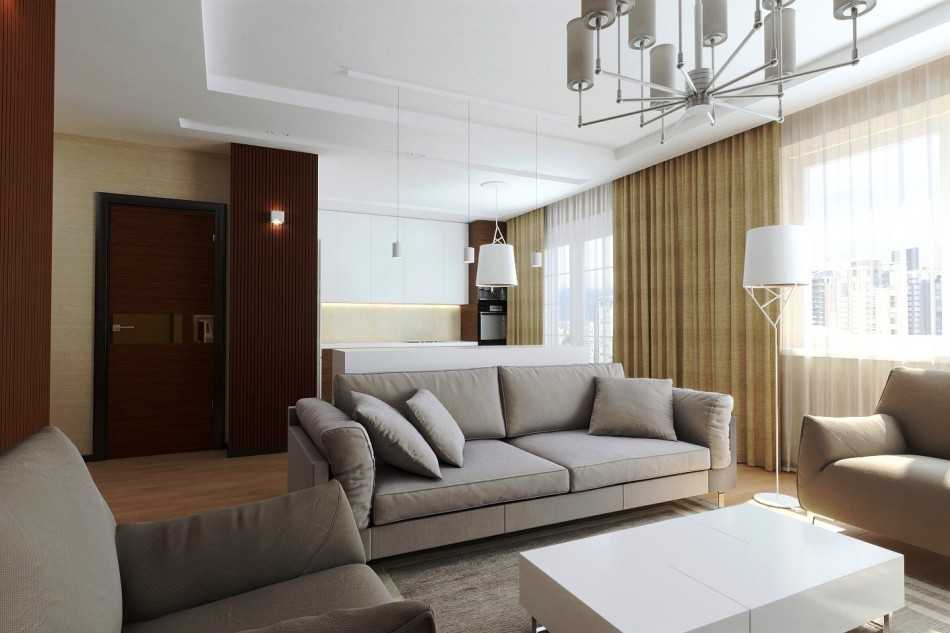 Распространенными вариантами объединения комнат является сочетание кухни с гостиной, коридора с гостиной, коридора с кухней.