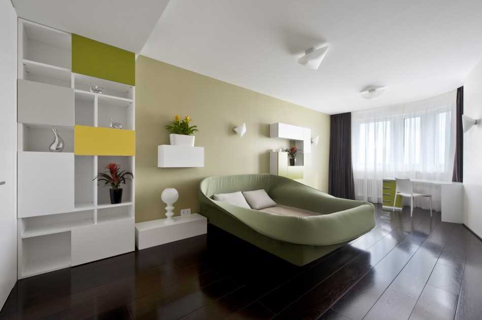 Комната должна казаться просторной и свободной, поэтому важно с умом выбирать элементы интерьера. Зонировать пространство можно при помощи легких складных ширм или стеклянных перегородок