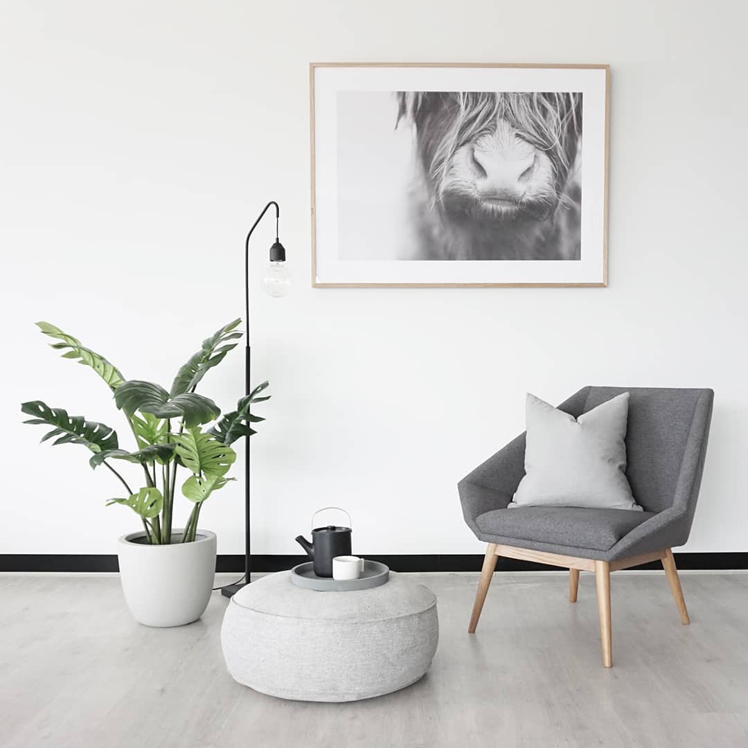 Минимализм – это не унылые и безликие стены, расставлять акценты можно и нужно, просто выбирать аксессуары стоит тщательно. Графические картины, черно-белые фотографии, абстрактные сюжеты, однотонная ваза простой геометрической формы… Рамки должны быть максимально простыми и даже нарочито грубыми. Часы, комнатные растения тоже имеют место быть.