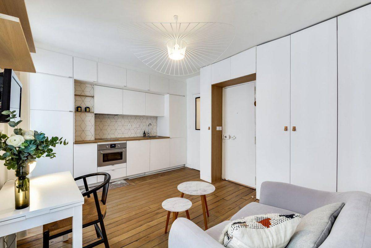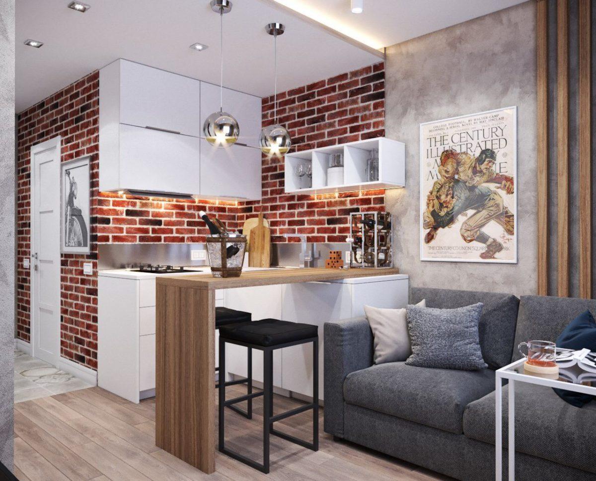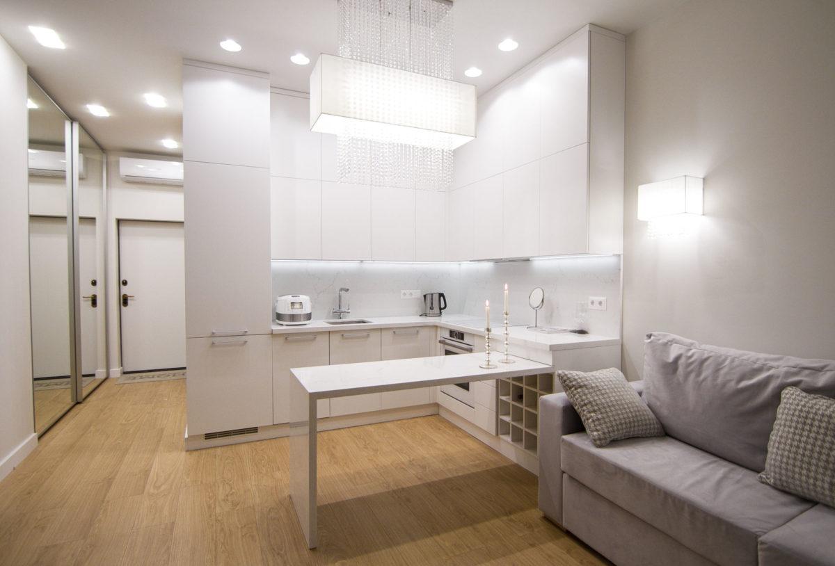 Это не позволит захламить площадь, что очень важно при ограниченном пространстве. Но дизайн студии 30 кв м и более может предполагать даже полноразмерные кухонные гарнитуры. По максимуму нужно использовать не широту, а высоту