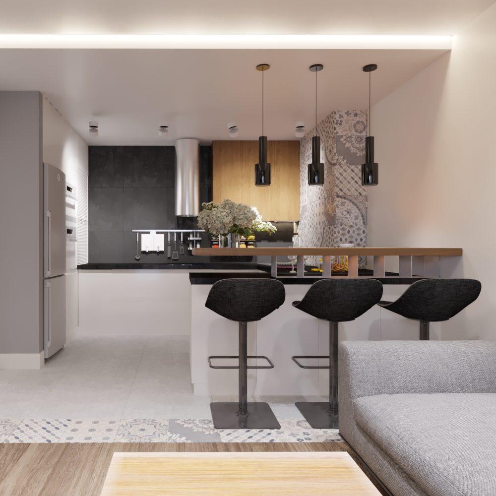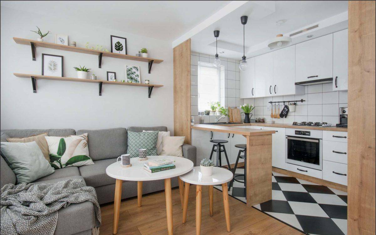 Лучше всего воспользоваться естественной перегородкой, которая остается после сноса стенки. Однако можно создать ее искусственно. Самый простой способ – барная стойка или островок. Это одновременно и граница, и удобная часть мебельного гарнитура. В квартире должно быть минимум вещей и мебели