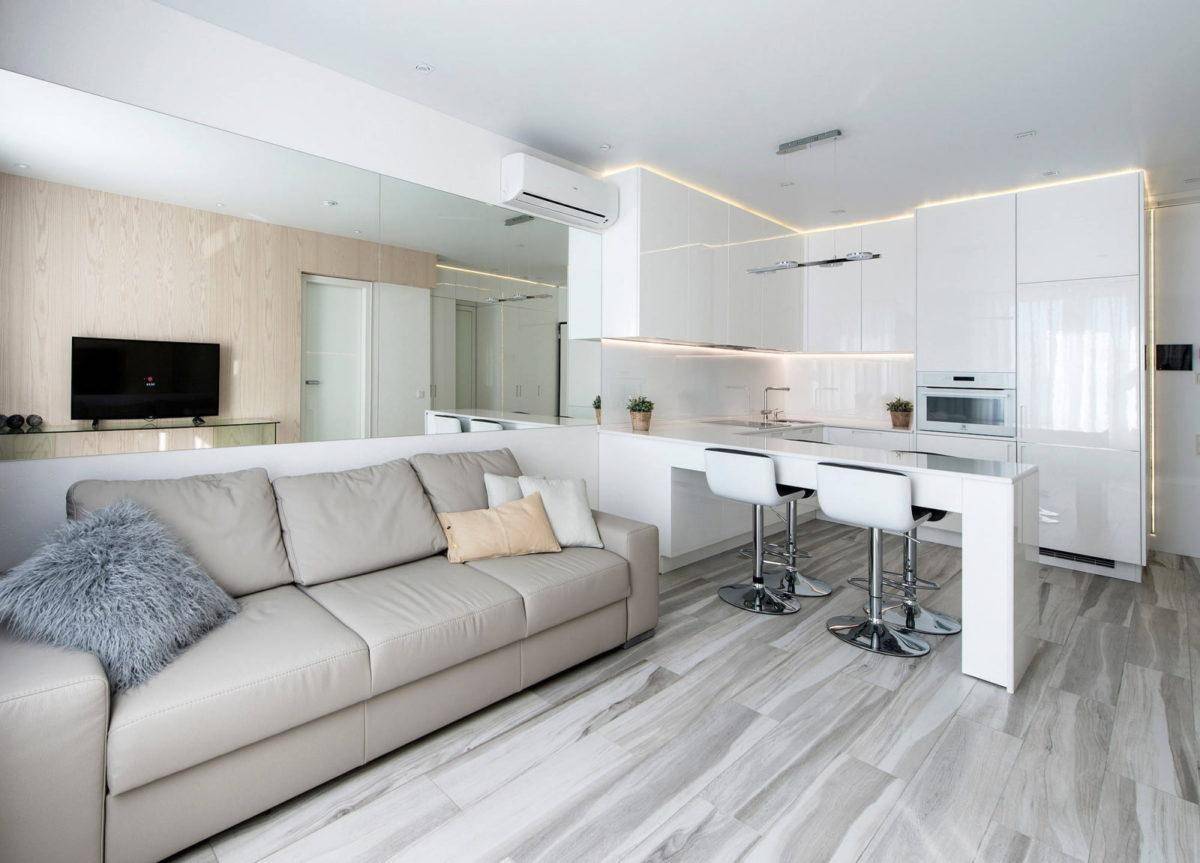 Дизайн современной кухни-гостиной отталкивается от идеи открытой планировки. Он выстраивается так, чтобы оптимальным способом соединить разные по функционалу зоны: кухонную, столовую и гостиную. Прежде чем приступать к перепланировке, необходимо удостовериться в возможности совмещения комнат.