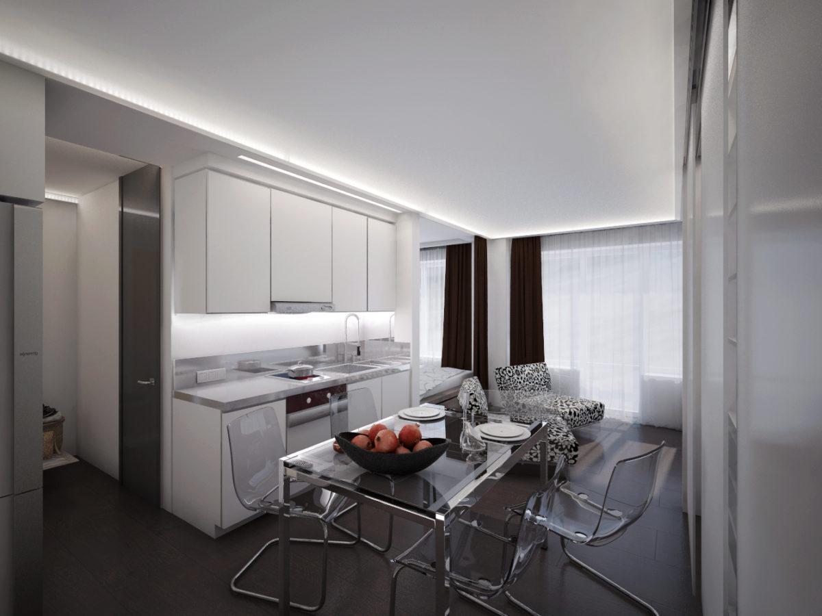Проект квартиры студии с кухней подразумевает соблюдение некоторых правил: