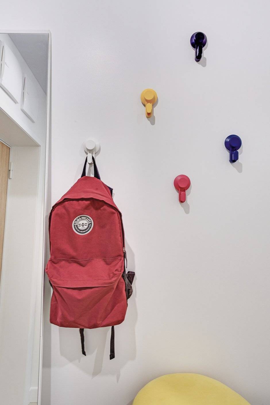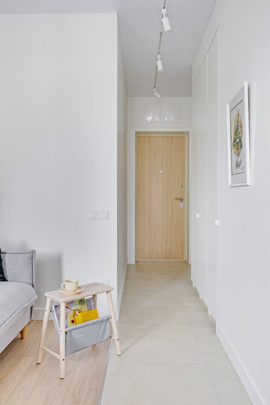 ПрихожаяОтделка: краска, TikkurilaНапольное покрытие: керамогранит, Сreto ceramicaМебель: шкафы и крючки, ИКЕА