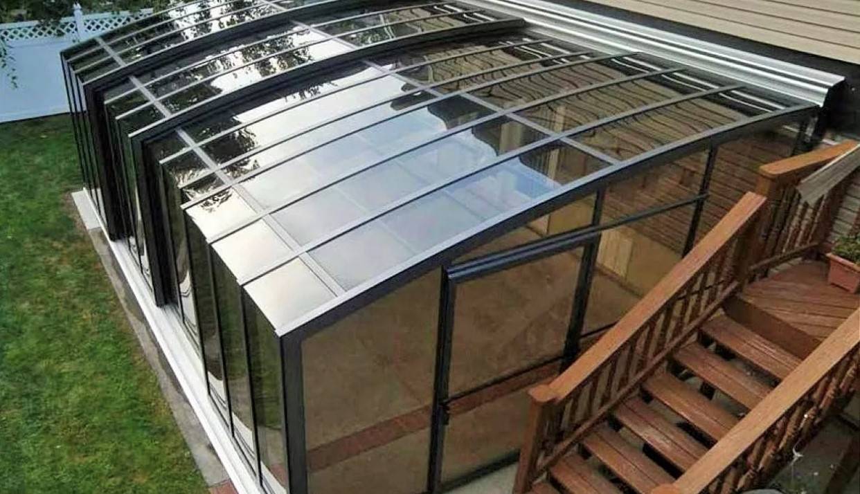 На данном видео для остекления используется монолитный поликарбонат толщиной 8 мм. Это холодный тип остекления.