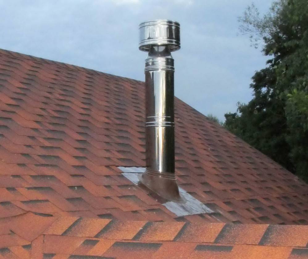 Монтаж дымохода, выполненного из сэндвич-труб через крышу