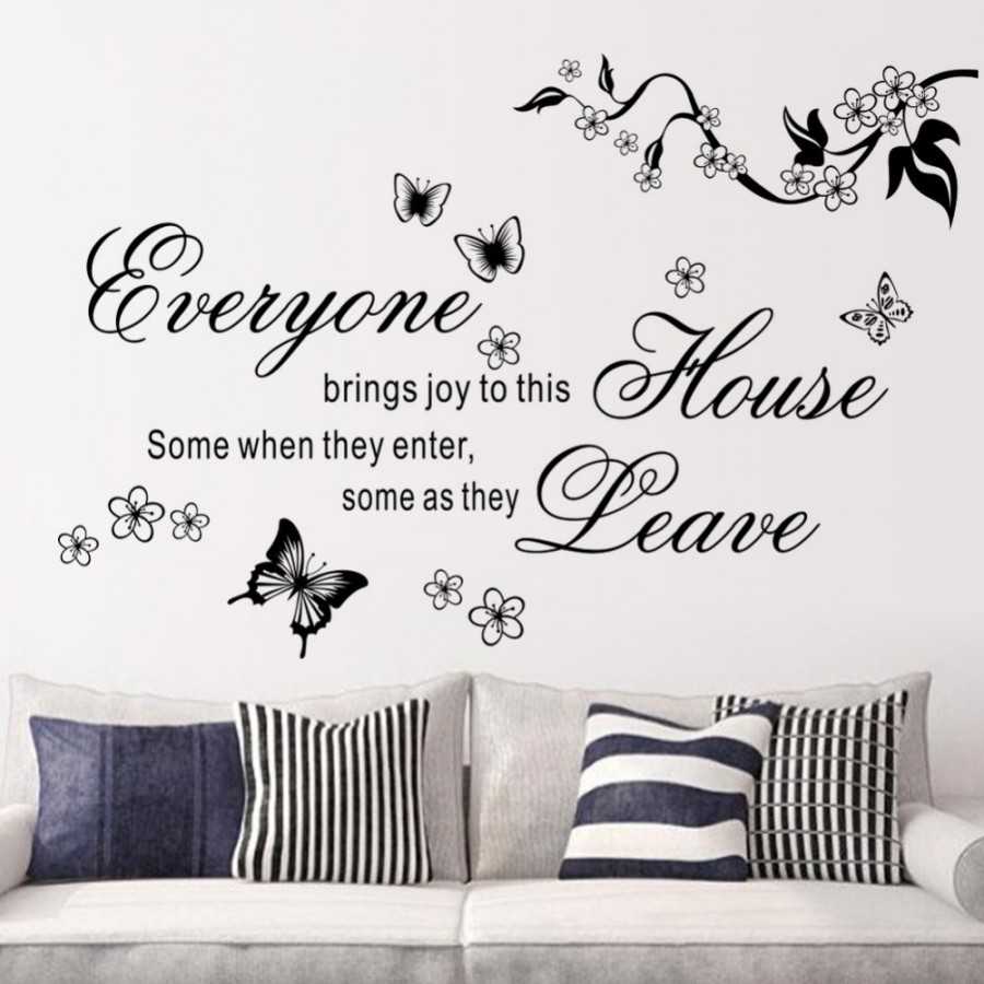 Для того чтобы создать эффектный декор комнаты или отдельной стены, можно скомбинировать несколько видов наклеек на обои. В гостиной комнате и прихожей, хорошо сочетаются наклейки-фразы с силуэтами, это придает эффект визуального расширения пространства, поэтому актуально для использования в маленьких по площади комнатах.