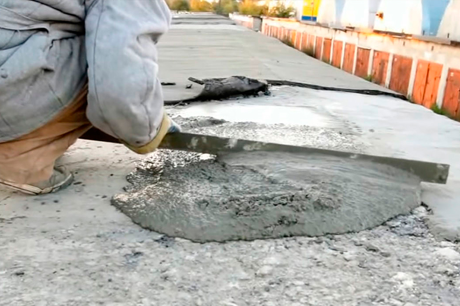 - Швы между бетонными плитами основания, а также все неровности и выбоины заделывают влагостойким бетоном марки М 150.