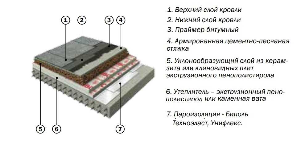 Кровельный пирог утепленной плоской крыши с наплавляемой кровлей
