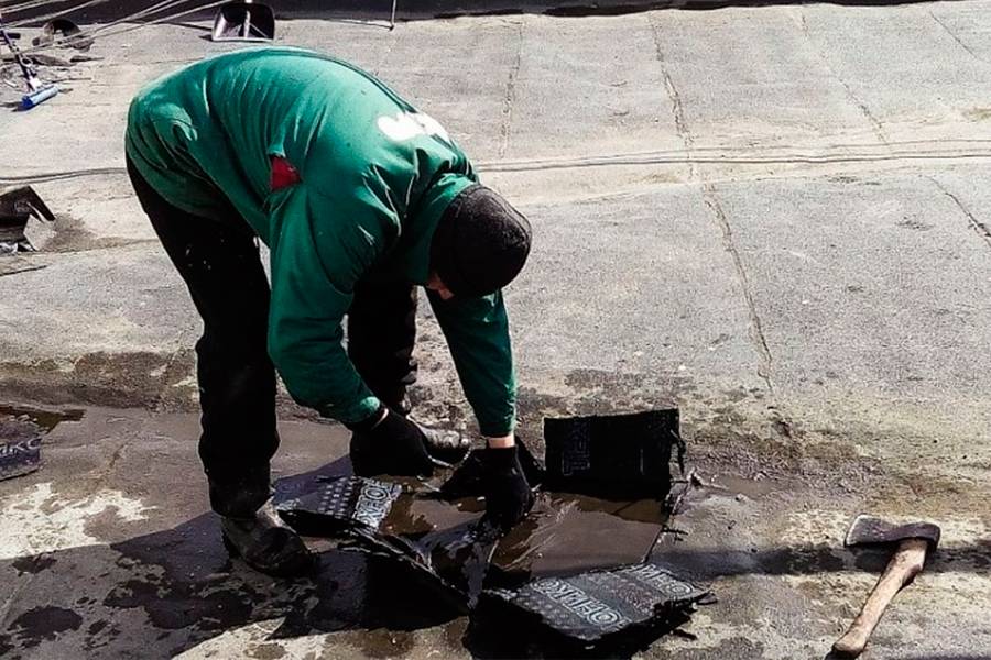Текущий ремонт. Он целесообразен, если общая площадь повреждений не превышает 40%. При этом используются заплатки из аналогичного покрытия, наплавляются новые швы на дефектные участки. Стоит заметить, что при соблюдении технологии при устройстве кровли, привлечении опытных специалистов срок службы покрытия не может быть меньше десятка лет.