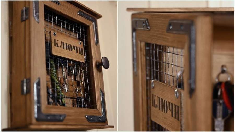 Держатели для ключей можно разделить на открытые и закрытые. Первые не дадут забыть ключи, так как они всегда на виду. Вторые выглядят эстетичнее: они закрываются декоративной дверцей, за которой прячутся связки. Их недостаток в сложности изготовления: чтобы смастерить такой аксессуар, потребуется навык владения столярными инструментами.