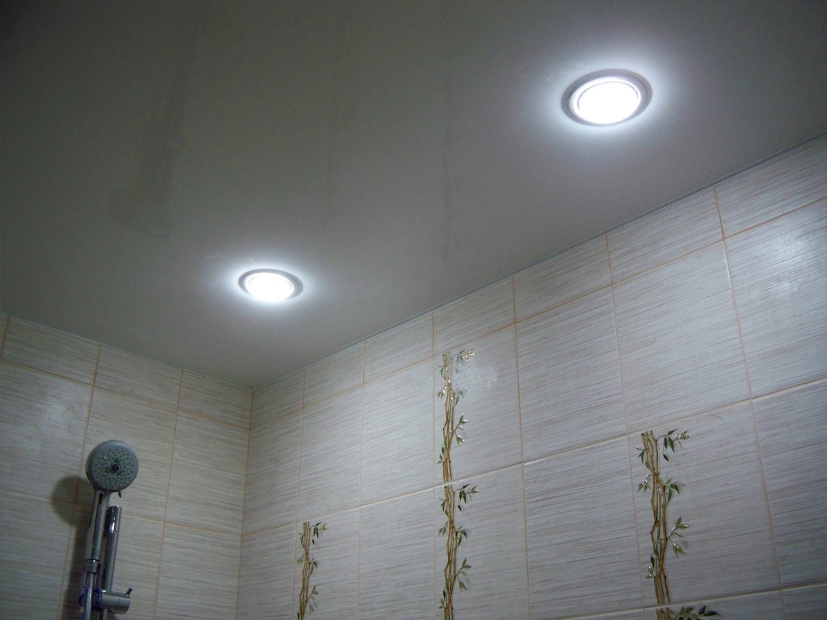 Расстановка светильников планируется ещё до монтажа ПВХ-полотна. По существующим стандартам, освещённость санузла для комфортного в нём пребывания должна составлять 200 лк.